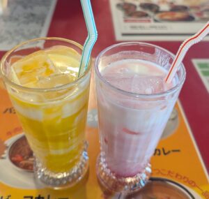 私のはマンゴーラッシー、友人がザクロラッシーだったかな。
